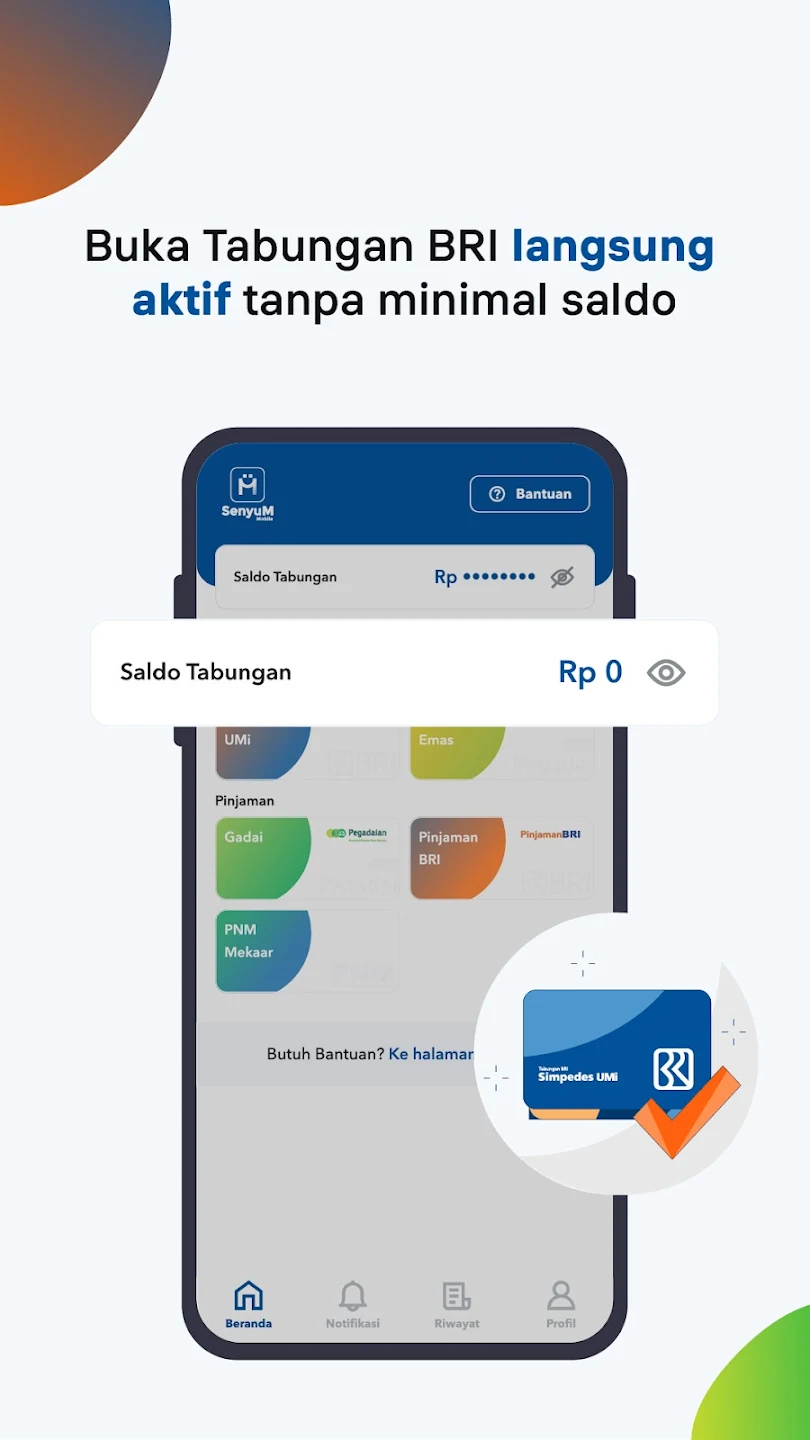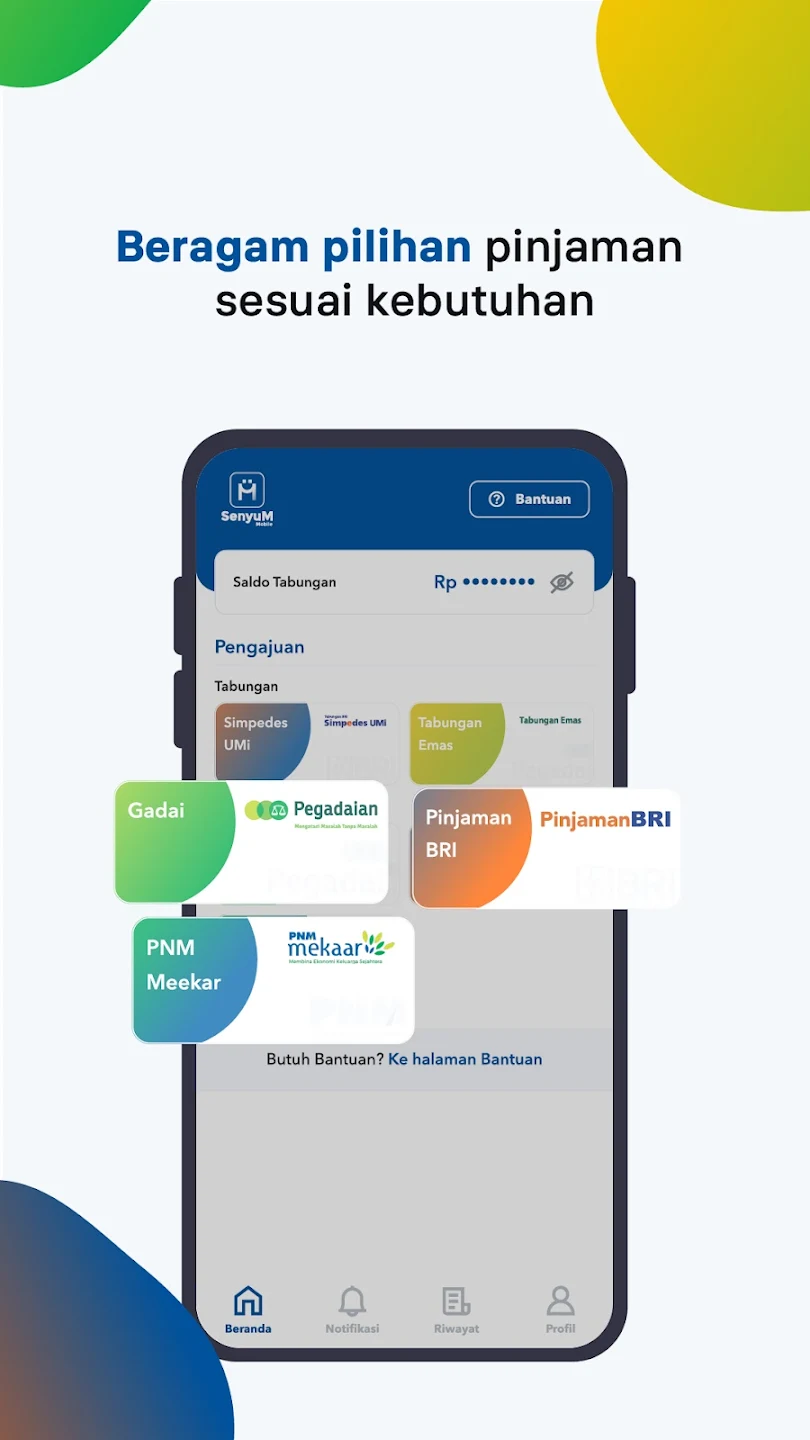 SenyuM (Ultra Micro Service Center) Mobile application is a form of synergy of the Indonesian ultra micro holding which consists of PT.BRI, Pegadaian and Permodalan Nasional Madani (PNM). SenyuM Mobile can make it easier for people to open savings, refer loans and enjoy a variety of financial products and services from the three companies according to their respective needs.